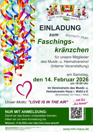 Mit über 450 Mitglieder zählt der Musik- u. Heimatverein Haus i. Wald e.V., welcher 1972 gegründet wurde, zu den größten kulturellen Vereinen in der Region. Im wunderschönen Haus i. Wald, das zu Grafenau im Bayerischen Wald gehört hat der Verein seit über 40 Jahren seinen Sitz.