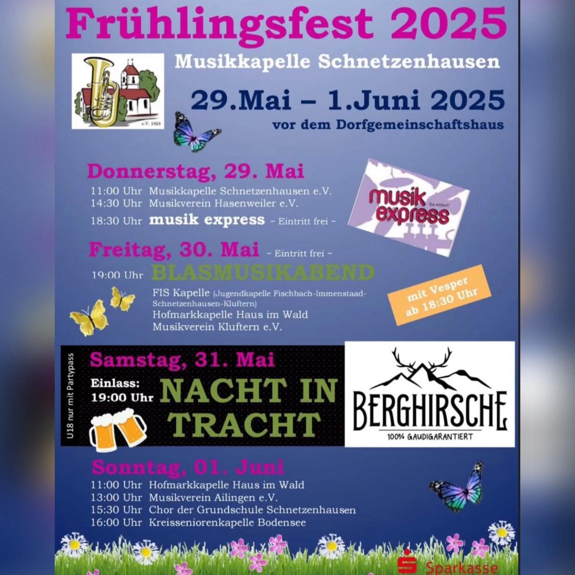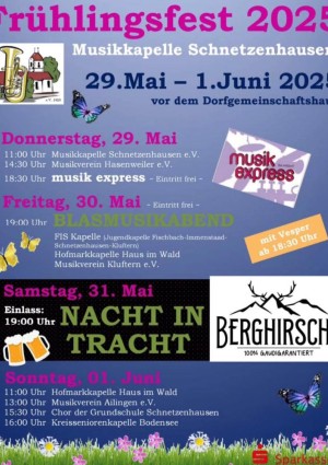 Abendprogramm: Wir spielen mit der HK als zweite von drei Blaskapellen am Frühlingsfest Schnetzenhausen um 20:30 - 22 Uhr