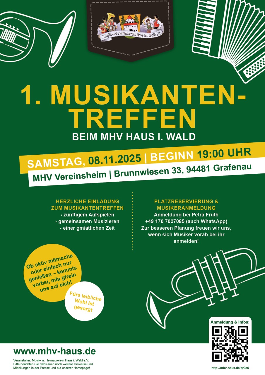 Am Samstag, den 8. November 2025, lädt der Musik- und Heimatverein Haus i. Wald e.V.